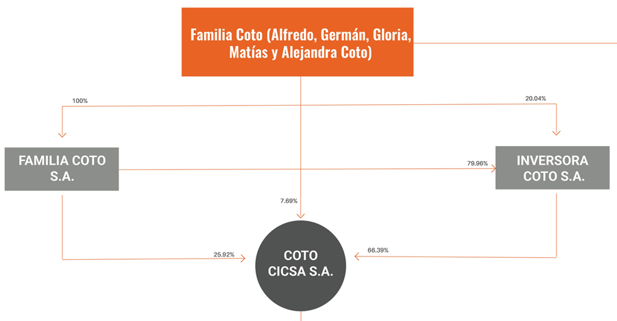 La familia Pagani, a través de sus integrantes Luis Pagani, Mario Enrique Pagani y Gabriela Cecilia Pagani, es la accionista de prácticamente la totalidad del Grupo Arcor SA, que, a su vez, es controlante en un 99,68% de Arcor SAIC. En efecto, los tres accionistas ostentan el 99,686534% de las acciones y el 99,679719% de participación en el capital y en los votos. Esta sociedad adquirió el carácter de multinacional argentina y se desempeña en tres grandes segmentos de actividad: la producción de alimentos de consumo masivo −como golosinas, chocolates, galletas y otros alimentos−, el agronegocio y la fabricación de envases.(1)
