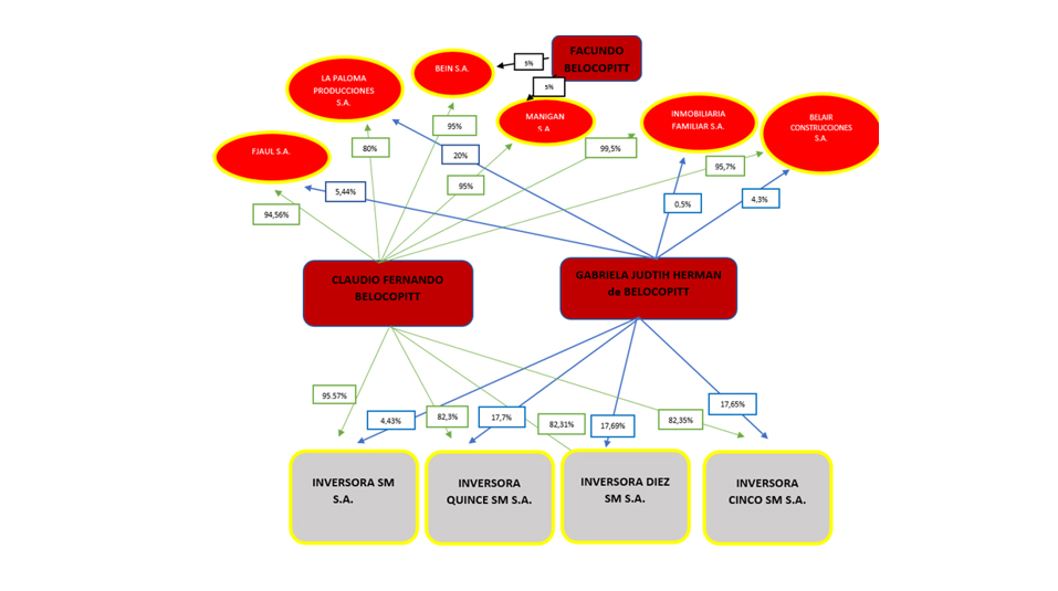 Claudio Belocopitt y familia. Entramado de propiedad de la familia