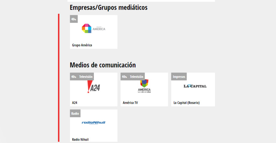 Para la confección del presente entramado solo pudo accederse a la información disponible en resoluciones de la Comisión Nacional de Defensa de la Competencia (CNDC), complementando con fuentes periodísticas diversas.